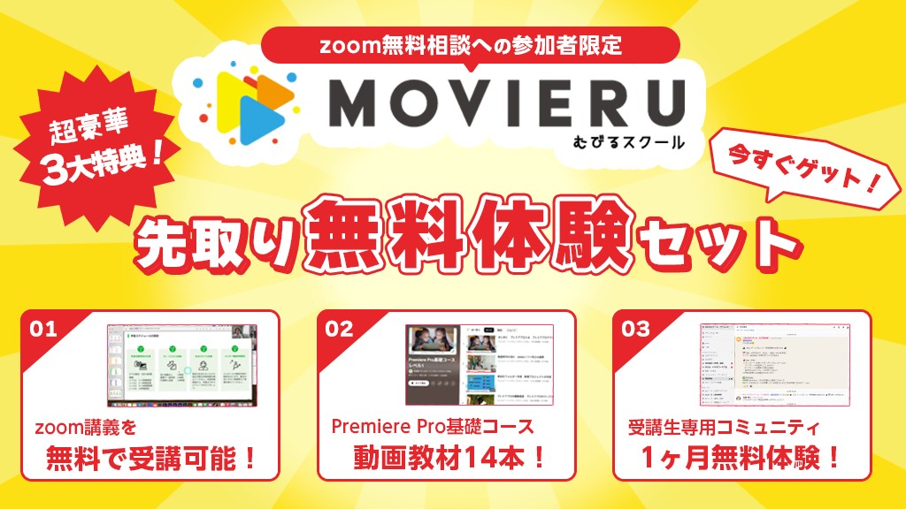 むびるスクールは、業界最大級の動画制作サービス「むびる」と「VideoWorks」が運営する動画編集スクールです。